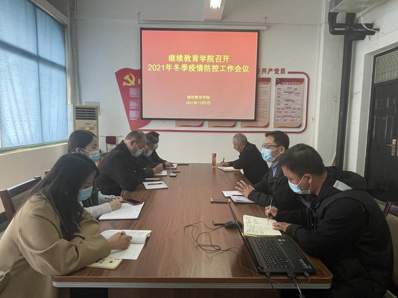 11月2日,继续教育学院组织全体教职工在4号教学楼四楼会议室召开2021年冬季疫情防控工作会议,会议由继续教育学院院长杜广平主持。