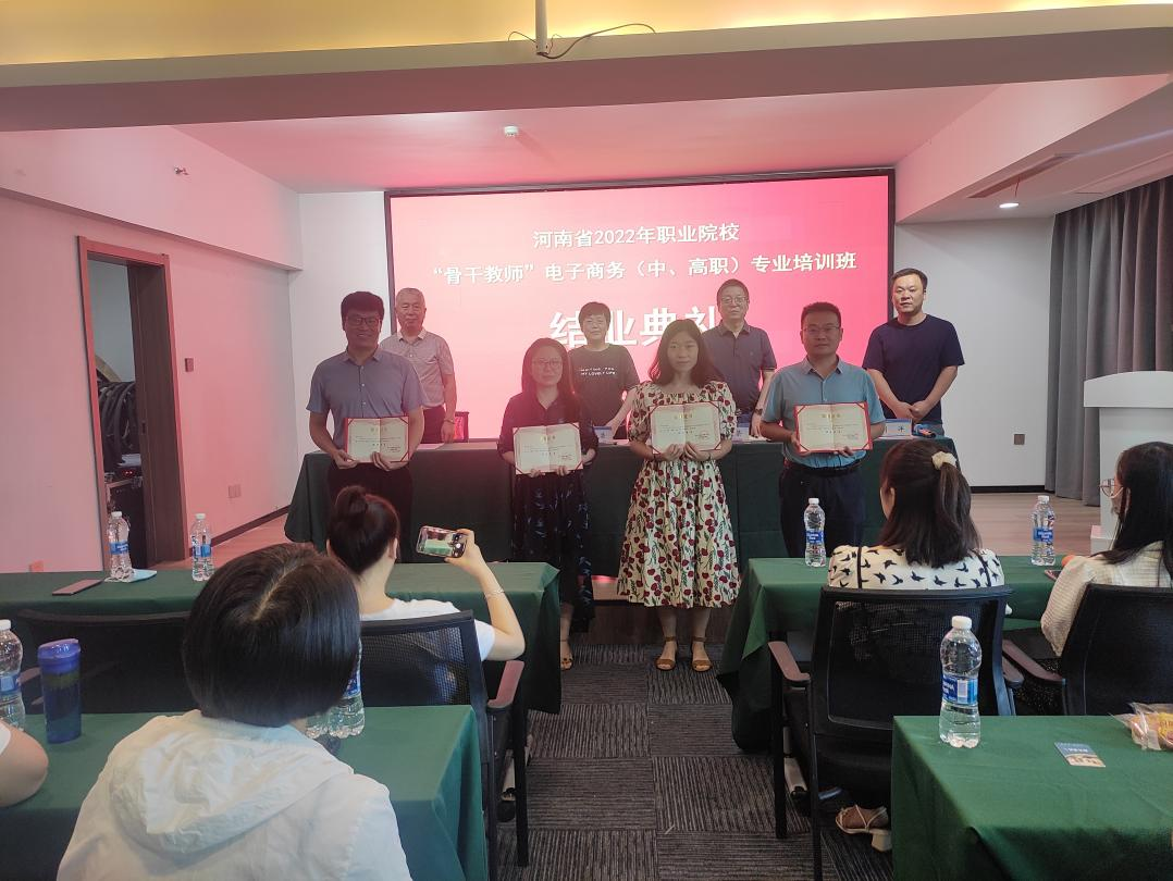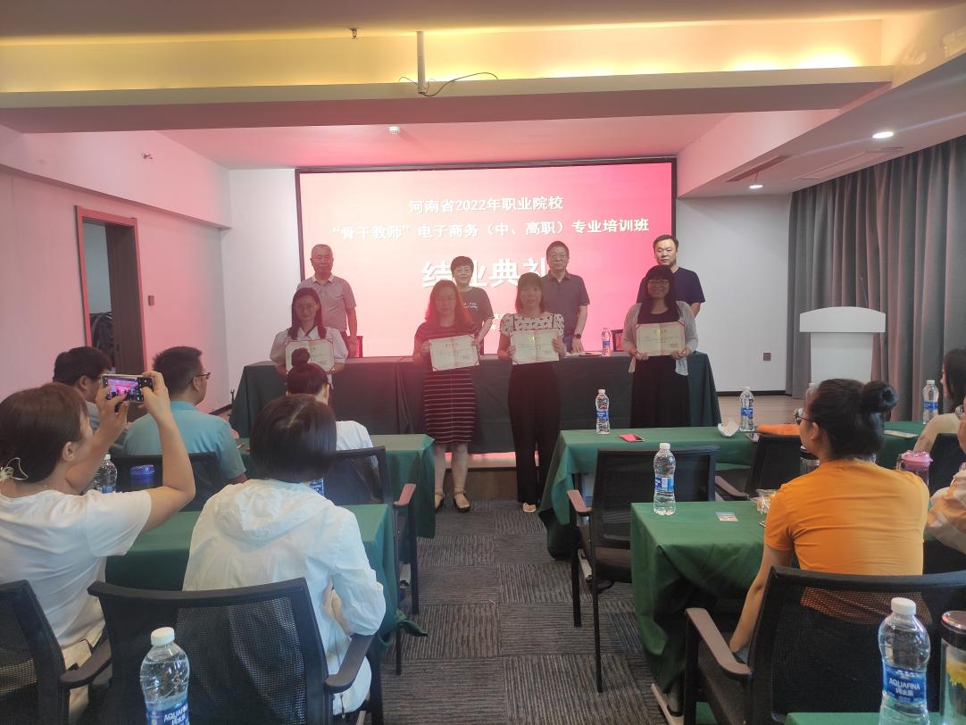 7月24日,河南省2022年职业院校“骨干教师”电子商务(中、高职)专业培训班顺利结业,商务与管理学院院长周爱荣教授、继续教育学院院长薛建荣教授、继续教育学院副院长靳祥升教授、此次培训班负责人继续教育学院刘洋老师出席结业典礼,典礼由继续教育学院刘洋老师主持。