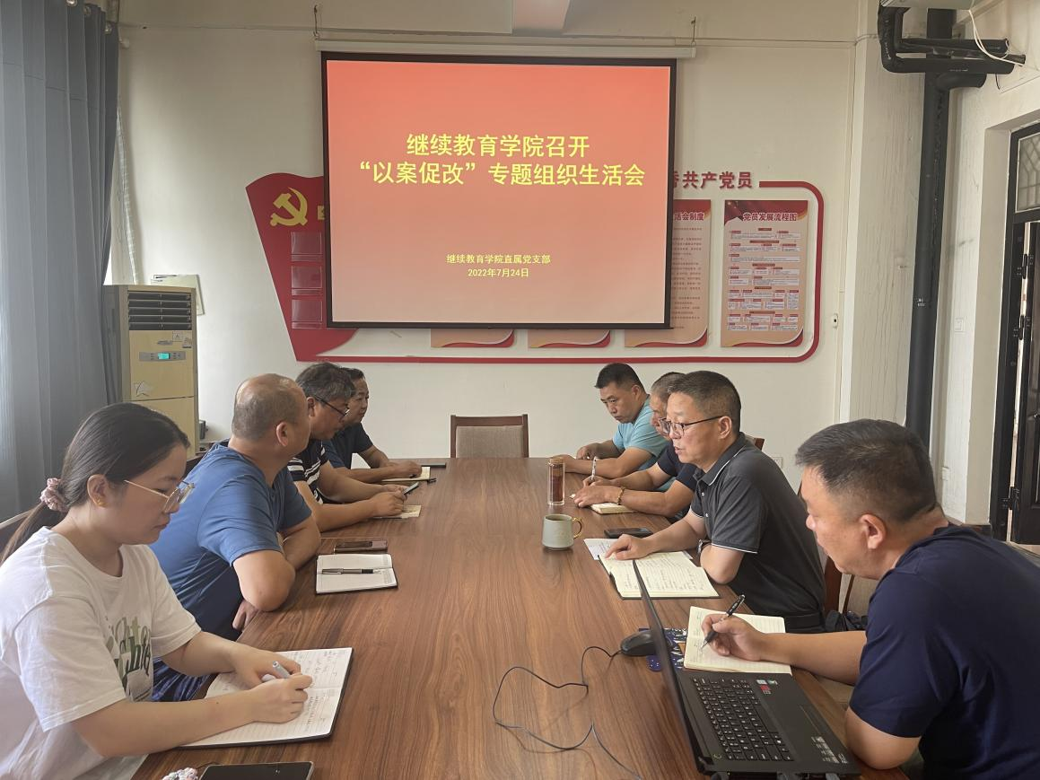 根据学校《关于召开“以案促改”专题组织生活会的通知》文件要求,2022年7月24日,继续教育学院在4号教学楼四楼会议室召开“以案促改”专题组织生活会,会议由党支部书记薛建荣主持,全体教职工参加。