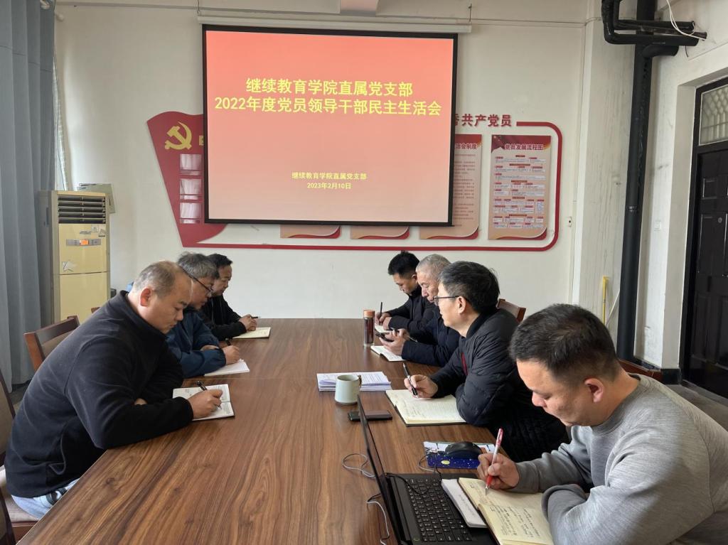 2023年2月10日下午,继续教育学院直属党支部召开了2022年度党员领导干部民主生活会,会议由党支部书记薛建荣主持,全体党员参加。
