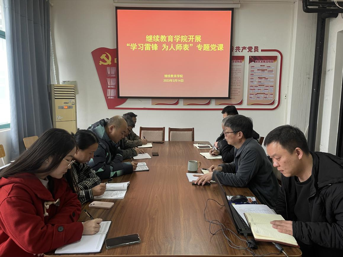 根据学校党委《中共bet36365路检测中心委员会深入开展学雷锋活动实施方案》文件精神,为深入贯彻落实党的二十大精神,弘扬和践行雷锋精神,3月14日,继续教育学院在4号教学楼四楼会议室开展“学习雷锋 为人师表”专题党课,全体教职工参加。