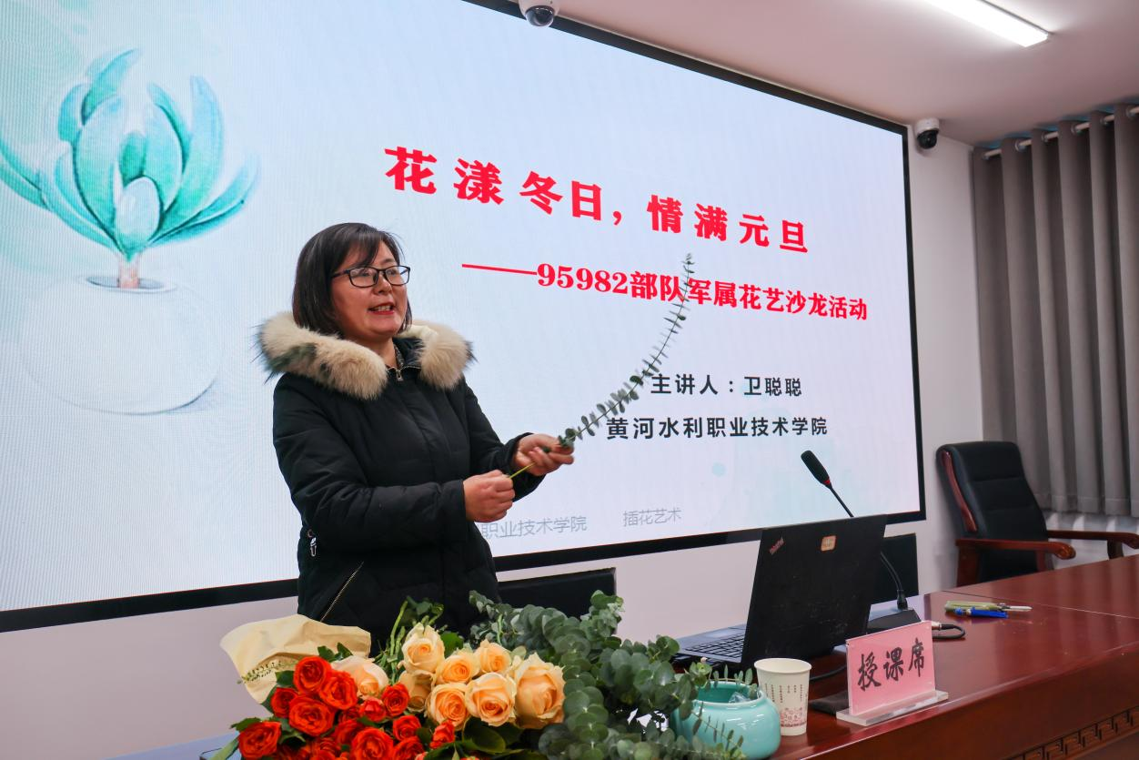 为大力弘扬拥军优属、拥政爱民光荣传统,巩固发展军政军民团结,营造爱我人民爱我军的社会风尚,2024年元旦,继续教育学院及驻汴部队联合举办“花漾冬日,情满元旦”军属花艺沙龙专场活动,旨在通过一缕花香,为驻汴部队军人家属送上一份节日的祝福,并致以崇高的敬意。