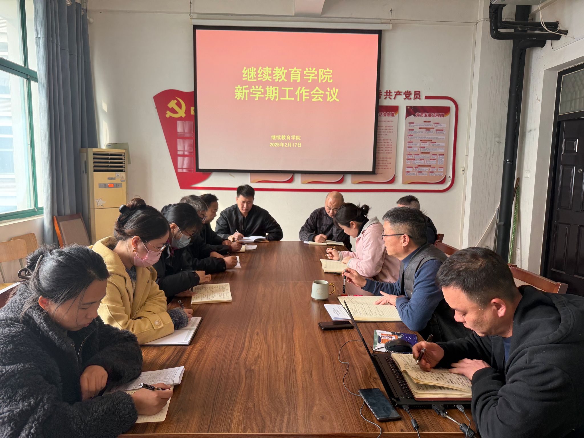 为全面部署新学期各项工作,确保学院各项事业稳步推进,继续教育学院于2025年2月17日在4号教学楼四楼会议室召开了新学期工作会议。会议由院长薛建荣主持,全体教职工参加。