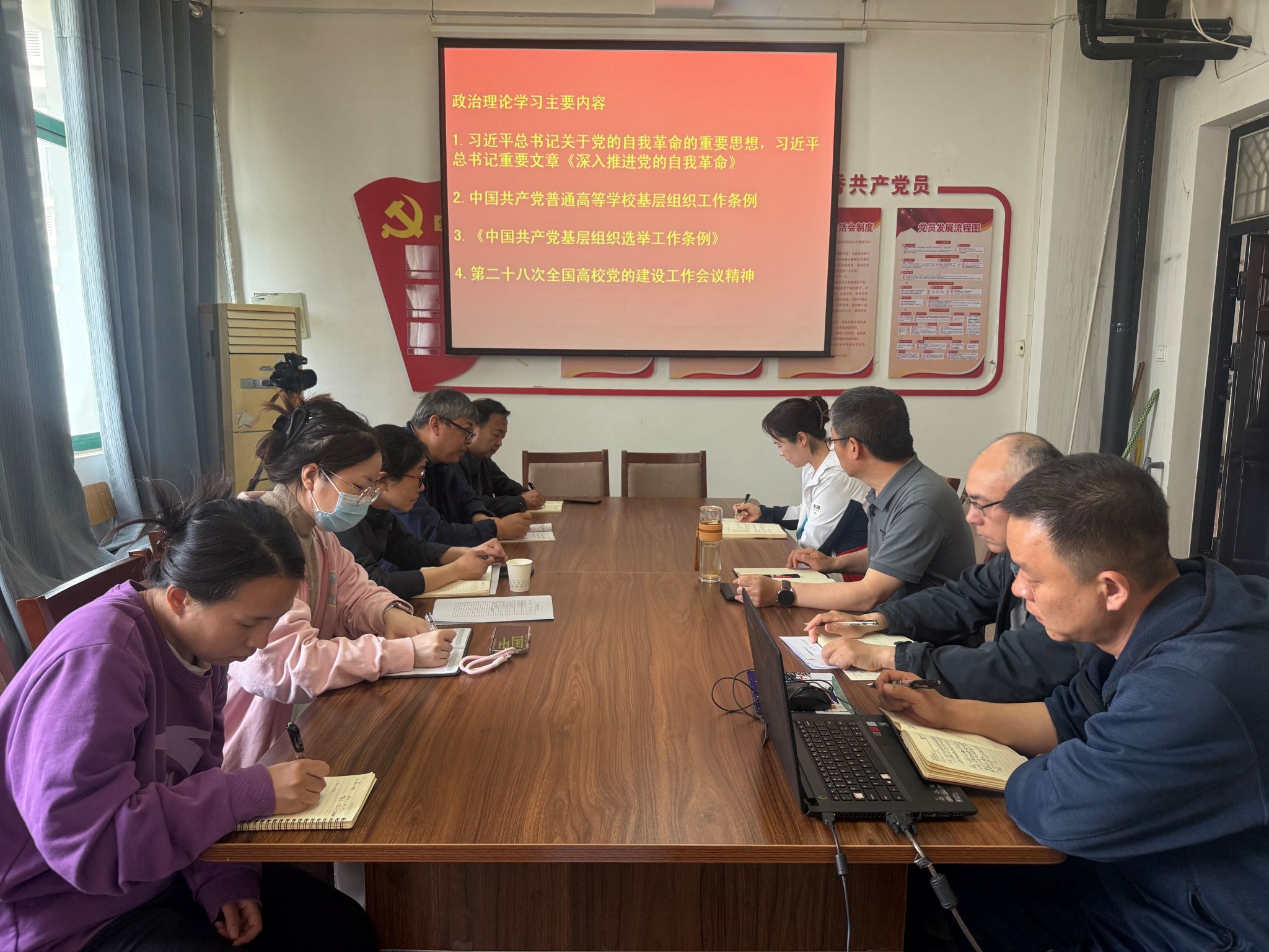 会议集中学习了习近平总书记关于党的自我革命的重要思想,习近平总书记重要文章《深入推进党的自我革命》《中国共产党普通高等学校基层组织工作条例》《中国共产党基层组织选举工作条例》和第二十八次全国高校党的建设工作会议精神。