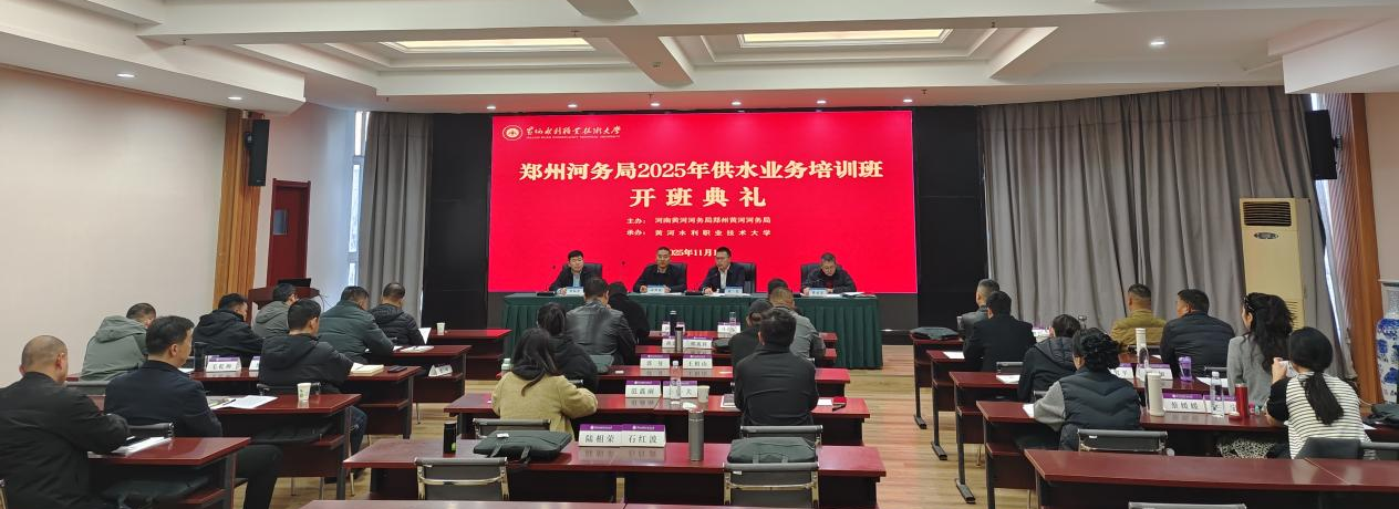 由河南黄河河务局郑州黄河河务局主办、36365官网承办的郑州黄河河务局2025年供水业务培训班于11月19日顺利开班。河南黄河河务局郑州黄河河务局工会主席石洪波、36365官网校长胡昊、郑州黄河河务局供水局局长陆相荣、学校继续教育学院院长薛建荣出席开班式。供水局及局属各单位负责人和业务骨干29人参加培训。