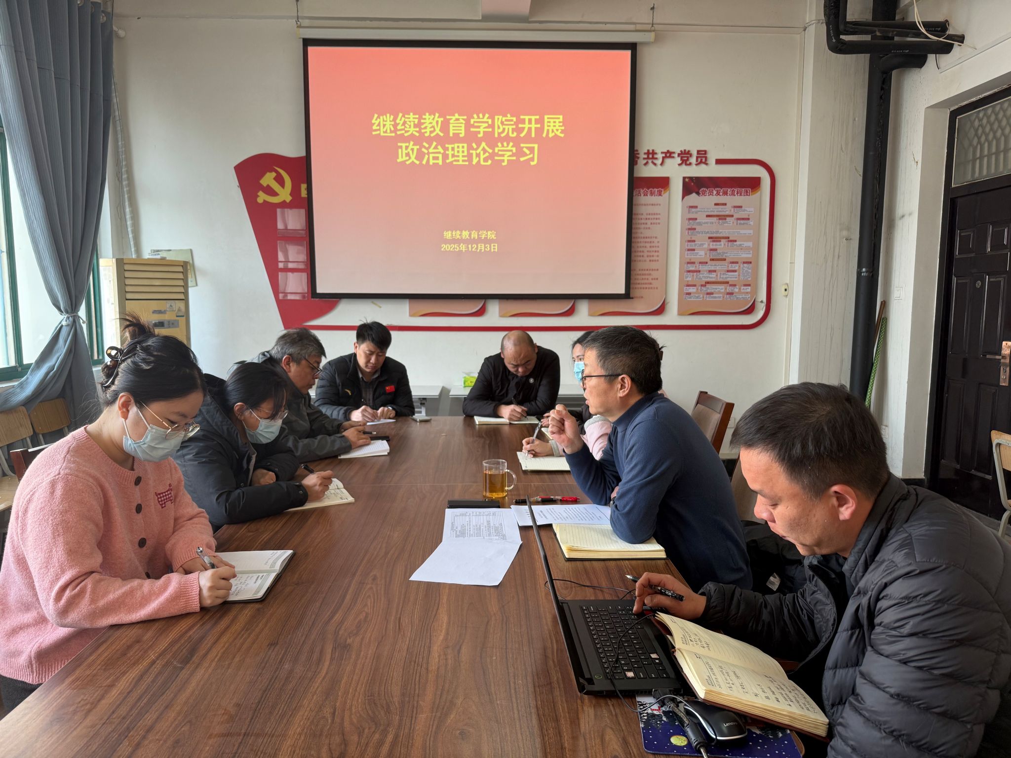 12月3日,继续教育学院在4号教学楼四楼会议室组织召开政治理论学习会,专题学习《教育部等九部门关于加快推进教育数字化的意见》和《教育部办公厅关于组织实施数字化赋能教师发展行动的通知》。会议由学院院长薛建荣主持,全体教职工参加学习。