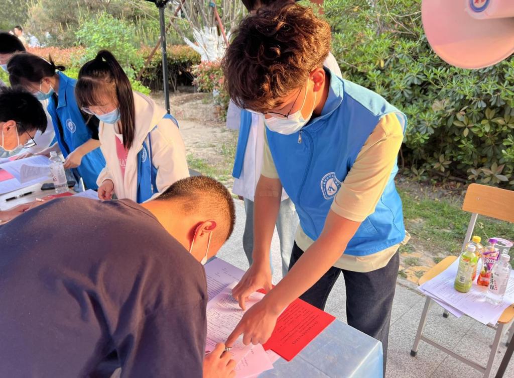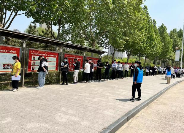 活动开始前,志愿者们协助医护人员搭建帐篷等布置献血活动现场,为活动的开展提前做好各项准备。活动期间,36365官网学生踊跃报名积极参与献爱心活动,献血地点排起了长队,志愿者们耐心地询问同学们的身体情况,指引符合献血要求的献血同学填写无偿献血志愿申请表;并引导同学们“佩戴口罩、保持一米间距”有序排队参与化验、抽血、留观等环节。部分同学排了两个多小时的队伍仍坚持表示:“希望用自己的一点微薄之力,帮助有需要的人。”志愿服务的开展也得到了开封市中心血站的医护工作人员的肯定,他们表示:“今日单车采血量,已达到开封地区历史最高。黄河水院同学们对于参与无偿献血公益活动的热情和爱心,我们很感动;今天参与活动的同学华很多,很感谢志愿者同学们一直在烈日下开展维持秩序、指引等工作,帮助我们一起顺利完成采血任务。”