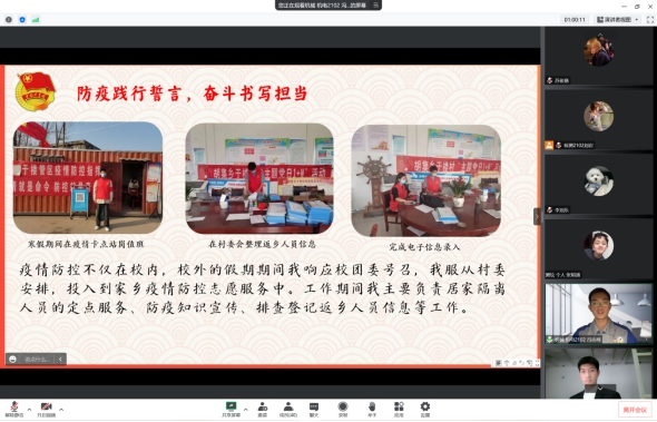 评选活动由各学院从422名青年志愿者先进个人中推荐30名同学参加青年志愿服务标兵评选。活动过程中,同学们通过图文并茂、制作精美的PPT,清晰详实地介绍了参加志愿服务活动的情况,有的为解决老年人等特殊群体的问题深入走访社区,只为送去温暖;有的不畏艰险抗击疫情,变身“大白”奔赴抗疫一线。有的结合自身专业的优势,有的化身环境治理能手等,同时大家也分享了自己的收获与心得。参赛同学们纷纷表示:“面对近期复杂的疫情形势,将继续听从学校统一安排部署,投身校园志愿者工作队伍中,做好校园疫情防控的宣传员、保障员与战斗员,用爱心、责任、担当与使命,共筑黄河水院安全防线!”志愿者同学们用实际行动诠释了当代青年“立大志、明大德、成大才、担大任”的时代精神,充分展现了新时代黄河水院人敢于担当、勤恳实干的精神风貌。最终,信息工程学院学生冯梦琪、机械工程学院冯志柯、土木与交通工程学院王旭、水利工程学院高赛等21名同学获得青年志愿服务标兵荣誉称号。