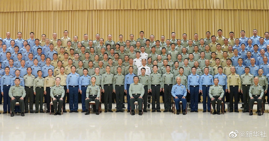 金秋时节,古城西安天高气爽,景色宜人。上午1030分许,习近平来到基地营区。在热烈的掌声中,习近平亲切接见驻西安部队官兵代表,同大家合影留念。