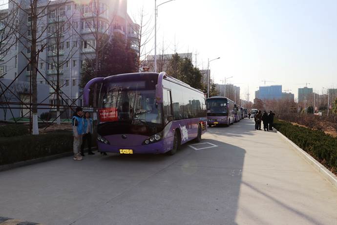 活动期间,学生工作部(处)、团委、保卫部(处)等部门负责人登上送站车,向学生及其家人送去亲切问候,嘱咐同学们注意路途安全,并向参加此次活动的学工人员、教师党员及学生志愿者表示衷心的感谢。活动中,10辆免费大巴车分别将学子们安全送至开封火车站、开封汽车中心站、客运汽车西站、开封高铁站等地。同时,各学院学工人员提供私家车10余辆,积极参与“寒假爱心送站”活动,将2000余名学生安全送达车站。