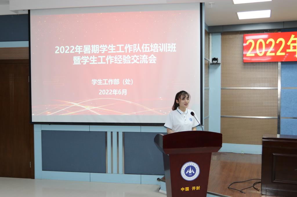 会上,学生工作部部长李聪宣读了《暑期学生工作队伍培训班暨学生工作经验交流会工作方案》,并对培训班相关工作进行了具体安排。与会领导分别为培训班及各培训小组授旗。国际教育学院辅导员丁晓婷代表全体学员进行表态发言。